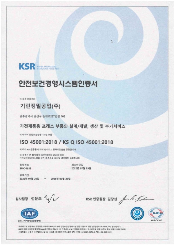 광주 - ISO 45001 페이지 정보 작성자 최고관리자 댓글 0건 조회 19회 작성일 25-07-03 14:55 본문 광주사업장 - ISO 45001(안전) 인증서 목록 이전글광주 - ISO 14001 25.07.03 다음글광주 - 기업부설연구소 인정서 25.07.03